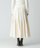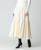 バイアス状のイレギュラーな切り替えにたっぷりとギャザーを施し、ふっくらと広がるボリュームシルエットを描き出したロングスカートです。