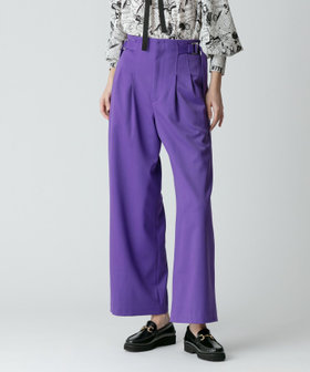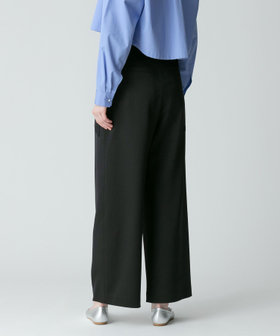 ウール混の高級感ある生地の風合いが美しいワイドパンツ。