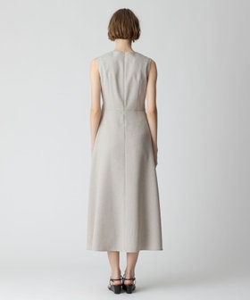 スラッシュ開きのネックがで涼やかな印象で、フレアシルエットが女性らしく、一枚でサマになる一着です。