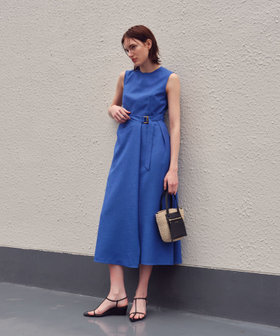 リネンライクなポリエステルで気軽に麻の雰囲気を楽しめる素材のワンピースです。