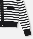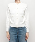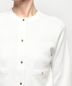 高めのポケット位置、前立てボタンのバランスがコンサバになりがちなカーデを新鮮に見せてくれます。