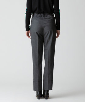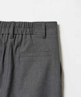 仄かなメランジが表情を持つ、TR(ポリエステルとレーヨン)素材のテーパードパンツ。