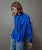 上品な光沢感があるツイル素材を使用したスカーフネックブラウス。