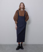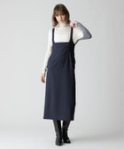 マニッシュさに女性らしさをプラスしたナローシルエットのジャンパースカート。