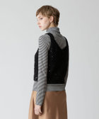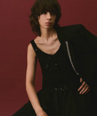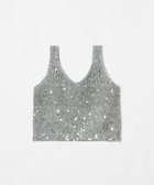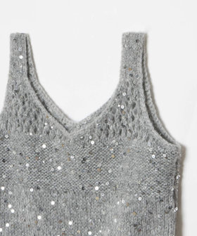 大小のスパンコール糸を引きそろえ、キラキラを添えたモヘア糸をふっくらと編み上げたニットキャミ。