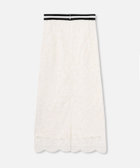 メッシュに花が咲き誇る様な、華やかなレースにニットテープをウエストにあしらい、アクセントを付けたレーススカート。
