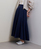 斜めに入れた切り替えがポイントで、パーツごとに少しずつフレア分量を変えることでアシンメトリーなニュアンスを出したスカート。