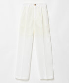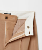 適度な光沢感と柔らかな肌触りが特徴の100番手の双糸を縦糸に使い、横糸にポリエステルを使用することで清涼感のある表面感に仕上げた爽やかな透け感のある2タックパンツ。