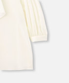 スカーフを巻いているようなタイディテールがポイントのチュニック丈ブラウス。