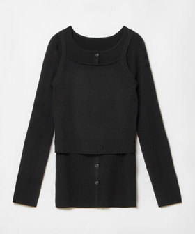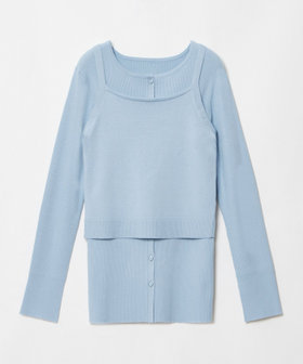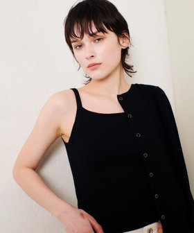 肌触りの良い、ヴィスコースリブニットのカーディガンと、フラットな編地のキャミソールのセット。