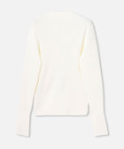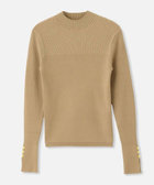 近くで見ると胸元からリブの太さが変わっており普通のリブニットとはひと味違う印象に。