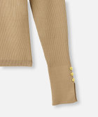 袖口はスリットと飾りのゴールドボタンをプラスしてカフス風に。