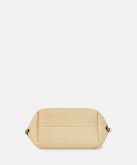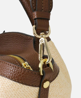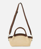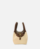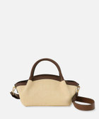 ラフィア調の軽めの素材とレザーのを使用したハンドバッグ。