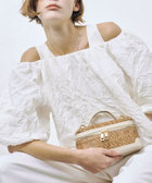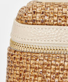 ラフィアとレザーのコンビネーションのコスメバッグ。