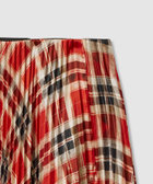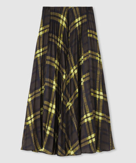イタリアのリサデステ社の繊細で綺麗な落ち感のあるチェック素材を使用したプリーツスカート。シガレットプリーツという半円形になったプリーツをあえて裏側にすることで裾にかけて広がりはねるようなシルエットに。ウエスト部分のプリーツは細巾になっていてイタリアのリサデステ社の繊細で綺麗な落ち感のあるチェック素材を使用したプリーツスカート。シガレットプリーツという半円形になったプリーツをあえて裏側にすることで裾にかけて広がりはねるようなシルエットに。ウエスト部分のプリーツは細巾になっていてベルト無しのオールゴム仕様にすることで腰回りはもたつかせずすっきりと。着用感も快適です。ベルト無しのオールゴム仕様にすることで腰回りはもたつかせずすっきりと。着用感も快適です。