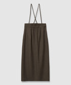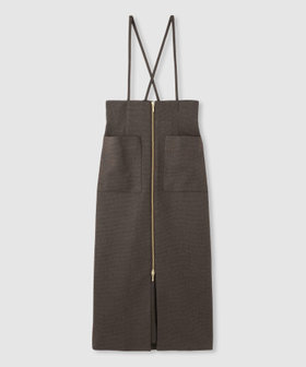 秋の雰囲気を先取りしつつイージーケア性にも富んだツイード調素材のサスペンダースカート。