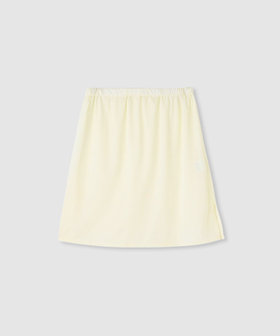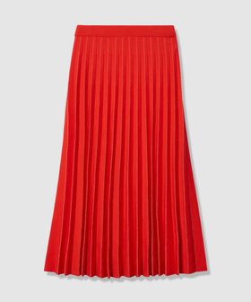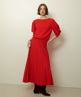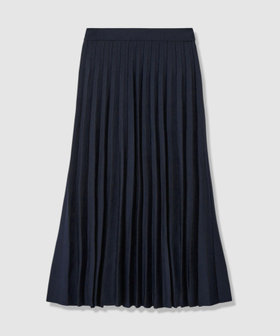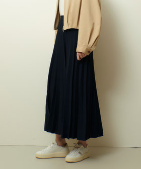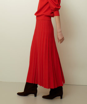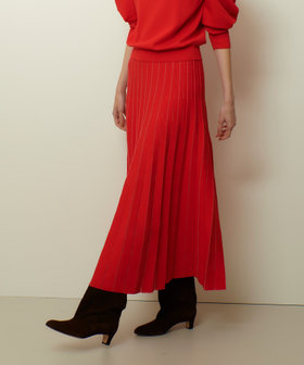 透ける糸と総針を交互に編み重ねたニットプリーツスカート。