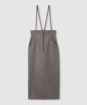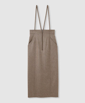 サスペンダーは取り外し可能で、タイトスカートとしても着用でき、スタイリングの幅が広がる一枚です。