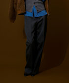 通常のトラウザーでは使用しないようなハリ感のある素材を使用しつつ、細めの両玉縁ポケットやセンタープレスを入れてマニッシュなトラウザーに。