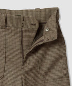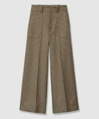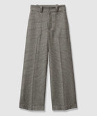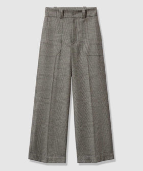 ラフなイメージのあるホームスパンに微光沢を加えた、クラシカルなチェックで仕立てた大人のキレイ目ベイカーパンツです。裾にかけてのラインが絶妙なセミワイドシルエットでリラックス感もあり、ややハイウエスト位置で引き締めることでスッキリとした女性らしいバランスに仕上げた一枚です。シンプルなデザインなので合わせるトップスを問わない万能アイテムです。同素材でお作りしているダブルJKとセットアップとしてもおすすめです。c/#81 は茶系のガンクラブ