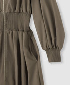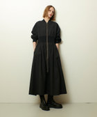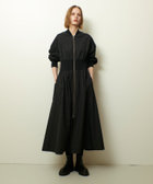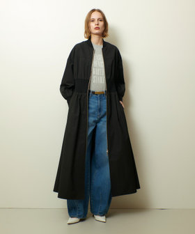 春に好評だったスポーツミックスのトレンドは継続中。モードなボンバーブルゾンをそのまま長くしたワンピースです。軽くて膨らみのあるタフタにリブ地編みでウエストマーク。ふんわりと広がるシルエット。長いジッパーは逆開きなので、留める位置で印象を変えられます。涼しくなれば、軽いコートとしてもお召しになれます。
