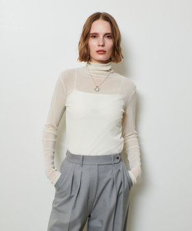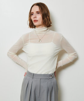 ほんのり透け感があり、柔らかく伸縮性のある生地が身体にやさしくフィットし、レイヤードスタイルにも最適。