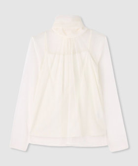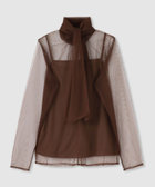 繊細なチュール素材を使用した、軽やかで女性らしい印象のボウタイプルオーバー。