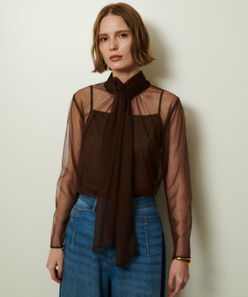透け感のあるシアーな質感が、スタイリングに抜け感と華やかさをプラスします。