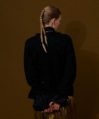 同じ糸で編んだ豊かなフリンジや、ポケットや前立てに施したベロアテープが華やかな印象を与えます。