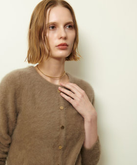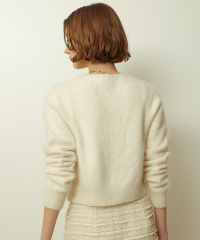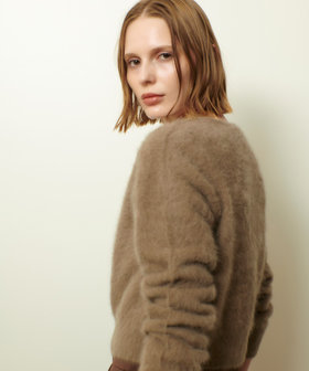 コンパクトな着丈、華奢に設定した肩巾で、着ぶくれしないふわふわニットです。