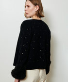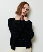 袖口をラメシャギーヤーンのパフィなフォルムのカフスで切り替えた、シックな中にエッジを効かせたデザイン。
