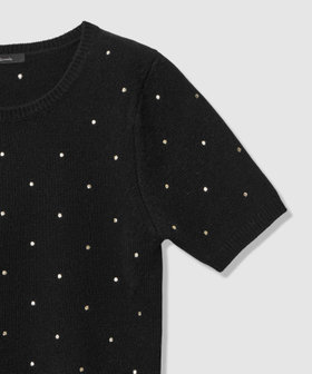 上質な紡毛ウールにドット刺繍を施した、リュクスな表情のハーフスリーブプルオーバー。