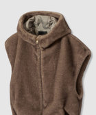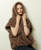 風合いの良いファーで華やかに仕上げています。逆開ファスナーで、好きなバランスで留めてお顔周りを立体的に見せています。