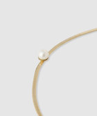 アシンメトリーに配した一粒パールが、首元にさりげないアクセントをプラスします。