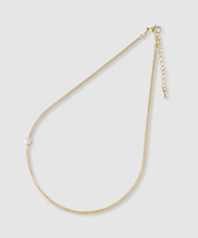 繊細なテープチェーンにグラスパールをあしらった上品なネックレス。