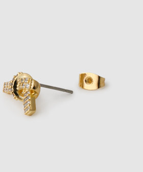 メレダイヤのように繊細なビジューを結び目のようにあしらったリボンモチーフのピアス。