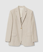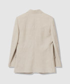 麻の清涼感とポリエステルストレッチの機能性をハイブリットした素材。2色からなる杢調のツイル素材は昨シーズンもアルアバイルではおなじみの素材です。デザインは、メンズのジャケットを女性サイズにアレンジしたようなマニッシュな印象のあるジャケットになります。デニムなどとも相性が良く、単品でもセットアップでもおすすめしたい。