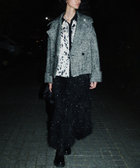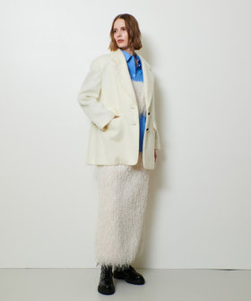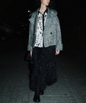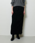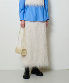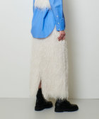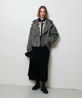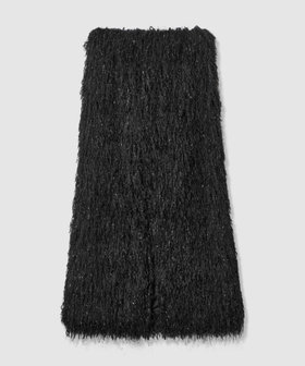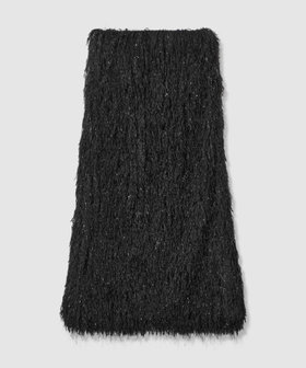 動きのあるフェザーフリンジにかすかにラメを施した素材で仕立てたナロースカート。