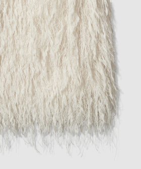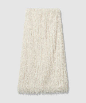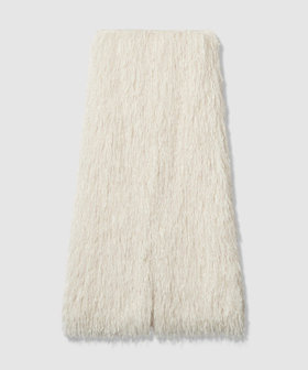 動くたびに揺れるランダムなフリンジ、毛足の陰影のコントラストが美しく、また、柔らかい素材なのでストレスフリーなのも魅力です。