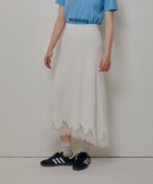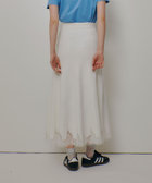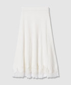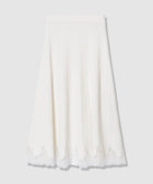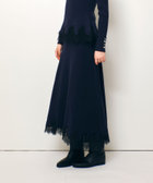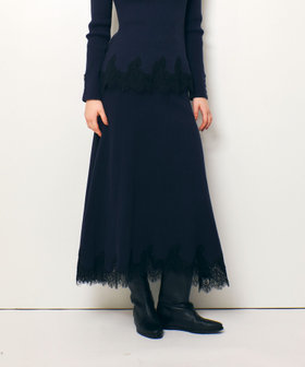裾にレースをドッキングしたエレガンスなニットスカートは、引き返し編みのテクニックでフレア分量を出し、動くたびに美しく揺れるシルエットに仕上げました。