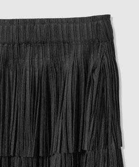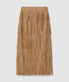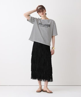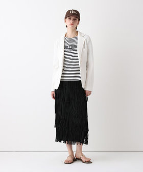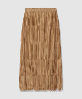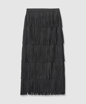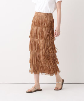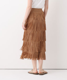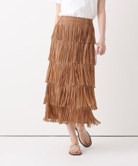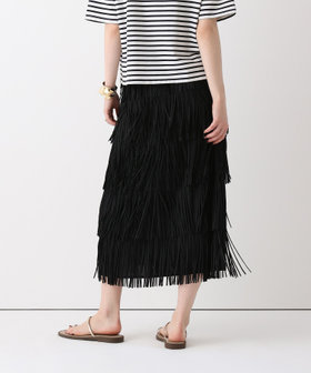 フリンジを何層にも重ねて仕立てた華やかなナロースカート。縦に流れるフリンジが歩くたびに揺れ、軽やかでドラマティックな印象を演出します。