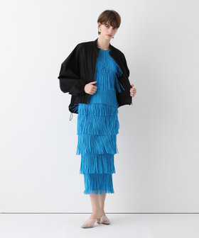 ジャージーに細かなランダムプリーツをかけ、さらにフリンジカットを施した存在感たっぷりのオリジナルテキスタイルを採用。