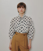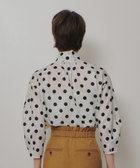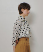 デザインタイリボンと透け感のあるドットで魅せる、華やかでクールなブラウス。程良い透け感に乗る絶妙なサイズ感のドットが、甘過ぎないトレンドを感じさせてくれる仕上がりに。襟元のタブで作るボウとデザイン釦がレディーライクなポイントとなっています。タブの釦を一つ下にずらすと、V開きのイメージになり、より大人フェミニンな着方が楽しめます。また、袖のバルーンシルエットが今年らしいポイントになっているので様々なシーンで活躍できる一枚です。同素材のピッチ違いのドットスカートと合わせることもおすすめですが、デニムパンツ等と合わせて大人カジュアルにも活躍します。
