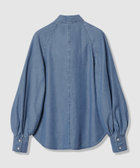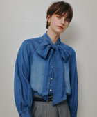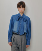 しなやかなデニムをこだわりのヴィンテージ加工で仕上げました。デニムというカジュアルな表情はそのままに、リボンタイや、やや膨らんだお袖で、フェミニンな要素をプラス。セミフォーマルなツイードやマニッシュなジャケットにも。鮮度UPした着こなしに仕上げます。ミルキーなドットボタンで、ほのかにウェスタンな気分を忍ばせました。
