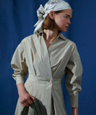 ラップディテールとタックのボリューム感が印象的な着映え力のあるワンピース。襟からのVネック開きやウエストポイントなど細部にまで拘り、一枚でさらりと大人の女性が着こなす美しいシルエットに仕上げました。袖のフォルム感の出るボリュームも華やかに印象付けるデザインです。コットンが入りながらも皺感の出ない素材なのでデイリーにもオフィスにも活躍し、