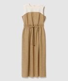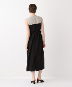 配色の切り替えがポイントの、通勤にも活躍できる大人ワンピース。シャリ味と清涼感のあるリネンの様な風合いの合繊素材なので、シワにもなりづらく爽やかな着心地の一枚となりました。ウエストのドロストリボンでウエストマークも出来るので、キレイ目のスタイルからカジュアルコーデまで幅広く活躍するワンピースです。キッチリとしたジャケットは勿論、デニムブルゾンとスニーカー合わせで抜け感のある大人カジュアルも楽しめます。