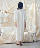 ミニマルなドレスですが、ゆったりとしたドルマンスリーブだからこそ出せる、ドレープ感がポイント。袖を下ろした時のバックに溜まるドレープに拘っています。