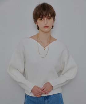 膨らみがあり、温かみのあるコットンブレンドニットです。アクセサリーが映えるデコルテを演出するハート型の衿型。甘くならないモードなパフ袖。タックアウトしてサラリと着て、華やぐ1枚着です。