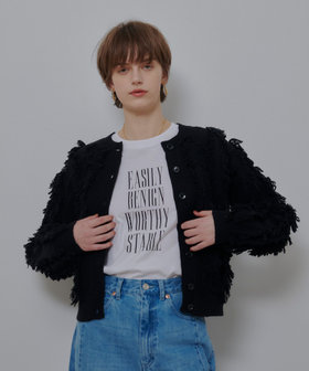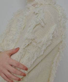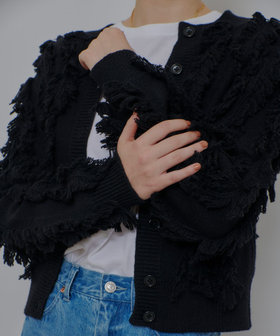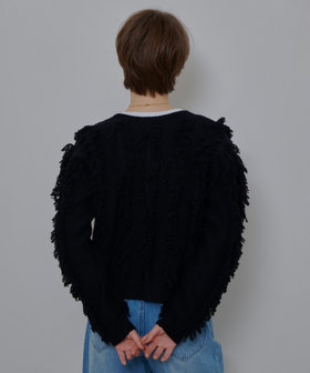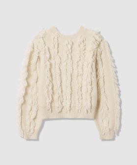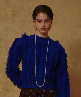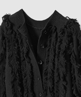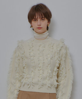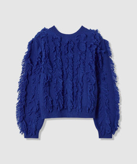 大胆な総フリンジ編みで仕立てた、視線を惹きつける存在感抜群の単品ニット。