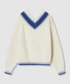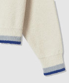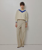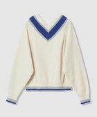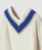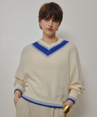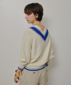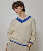コットン×ポリエステルのブークレーヤーンを使用することで表面変化をで表情を出しているニットプルオーバー。ドライタッチの為、凹凸感のある表情ながらサラッとした清涼感も持ち合わせています。こちらの糸でチルデンの要素を引用しながら女性らしさをプラスしたデザインに仕上げています。キレイ目のパンツやデニム、タイトスカートなど、様々なボトムに合わせることでキャッチーさがありながら抜け感のあるスタイルにしてくれます。オフ白をベースに鮮やかなブルーを効かせた配色と、黒をベースにライトイエローと白を効かせたベーシックな配色の2色展開です